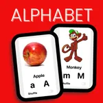 This is a simple set of 26 Flash Cards containing the Alphabet letters, upper and lower case, a word and a picture representing the word. The user experience is close to the usage of a cardboard set.